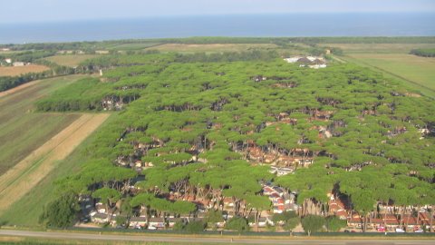 Wir hatten uns zuhause schon den Camping Albatros in San Vincenzo ausgesucht. Sehr schöner Platz mit ausgedehnter Poolanlage. Ein Sanitärhaus, das tatsächlich zum Verweilen einlädt. Mit Bänkchen, Plamen und Blumen. Wird en ganzen Tag hergefummelt und ist dher auch meist perfekt sauber. Ach ja, mit Musikbeschallung. Am Platz gibt es auch Unterhaltung. Die 200 Jahre alten Pinien, die ein Dach hoch uber dem Platz bilden sind einfach Traumhaft. Das Beste ist der Abstand zum nächsten UL Flugplatz. Mit dem Flyke leicht zu erradeln.