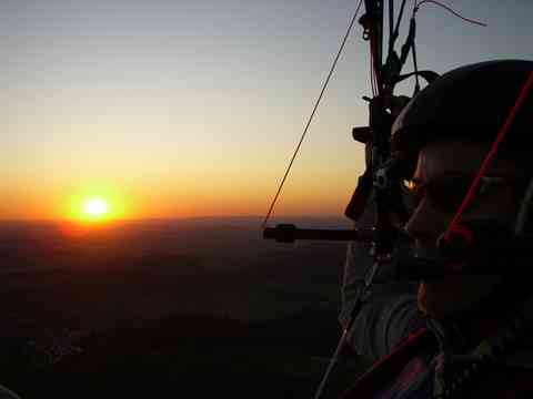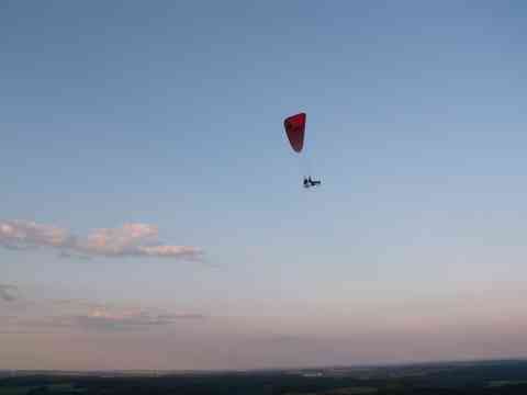 Wie auch immer. Beim ersten fliegbaren Wetter geht es raus zum Flugfeld. Alles aufgebaut wie es im Fresh Breeze Anleitungsvideo zu sehen ist. Motor an. Und jetzt einfach Motor auf Laut stellen. Beim ersten Versuch mach ich das noch zu zaghaft - Sartabbruch. Dies sollte aber bisher mein einziger Startabbruch bleiben. Seither habe ich sehr viele Starts und Landungen gemacht und kann nur feststellen, dass das Ding super startet. Voraussetztngen sind moderate Windverhältnisse und sorgfältige Startvorbereitungen. Aber dann ist das alles sehr lässig. Da man nicht zu Fuss beschleunigt, muss der Schirm kurz aber kräftig angebremst werden, damit er nicht überschießt. Unterlaufen geht nicht. Also mit den Steuerleinen korrigieren. Zum Abheben leicht anbremsen. Und schon gehts dahin. Gas nach dem Abheben nicht raus nehmen sonst ... genau, pendeln, mit dem Vorderrad in die Erde bohren und Gabel ist im Arsch. Landungen sind ganz easy. Wie beim Gleitschim üblich immer möglichst genau gegen den Wind. Schön ausflairen und das ganze wird zum Kinderspiel. Beim Fliegen selbst ist nicht viel zu beachten. Die erhöhte Masse macht den Schirm etwas schneller und das Nachpendeln ist einfach ausgeprägter.